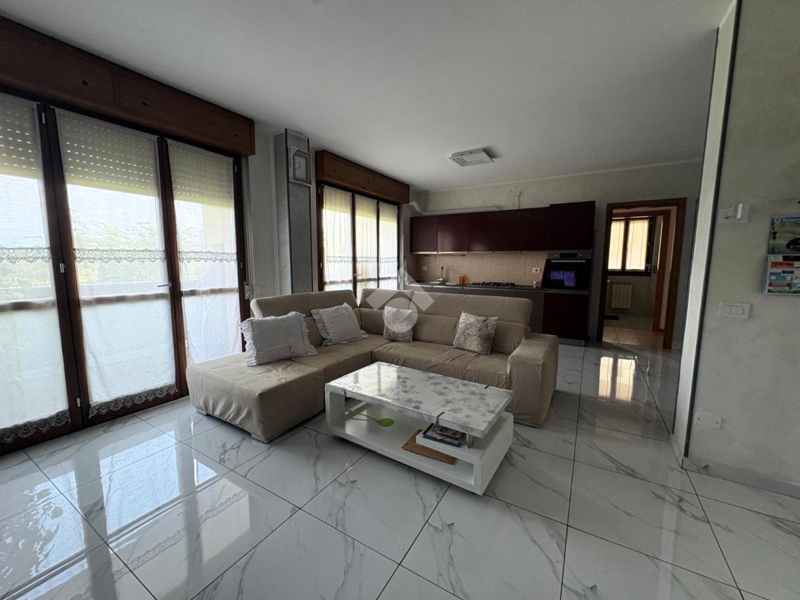 Varcando la prota d'ingresso veniamo accolti ad una luminosa zona giorno openspace con angolo cottura delimitato, delle comode portefinestre ci consentono di accedere a due balconi che percorrono l'intera zona.